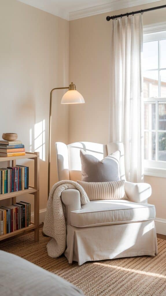 Place a small bookshelf nearby to keep your favorite books close. This makes your nook both handy and inviting.