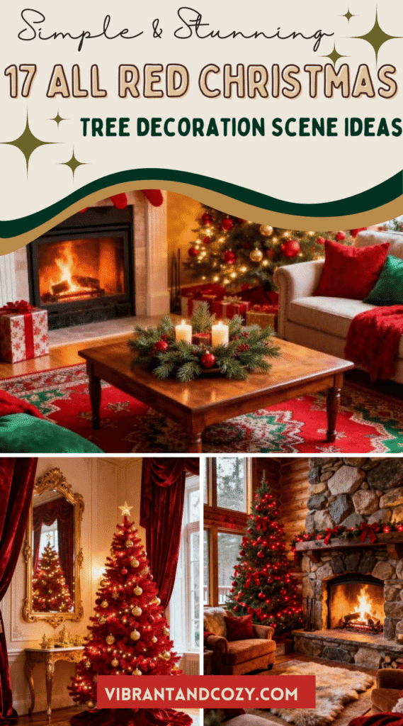 As you decorate the tree, think about using simple ornaments like gold stars or shiny glass balls. They’ll add a warm glow that looks great with the red.
