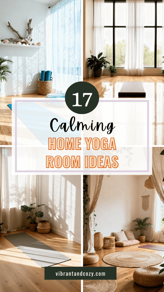 Start with pale wood floors, which bring in warmth and a sense of openness. These natural materials not only enhance the room’s aesthetic but also ground you during your practice.