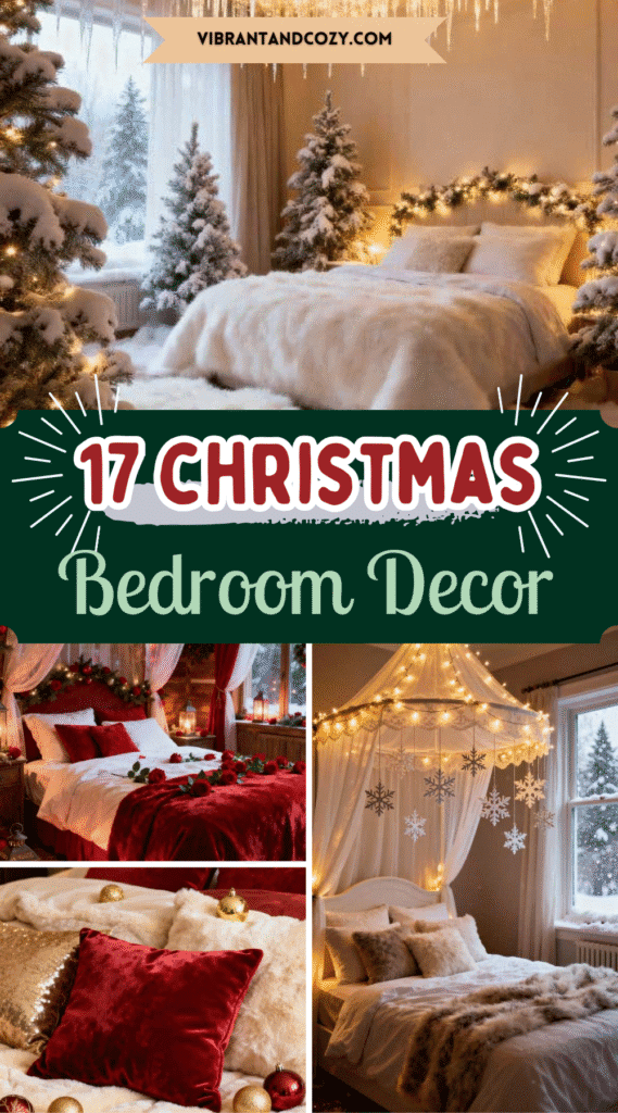 If you want to make your bedroom feel cozy for Christmas, try adding some sheer curtains. They let in soft light and make the room feel warm.