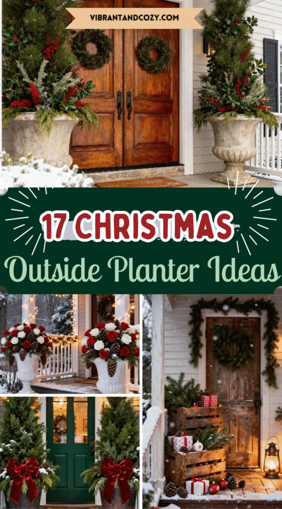 If you want to brighten up your porch for Christmas, consider using red planters. They look nice and add a cheerful touch to your home.