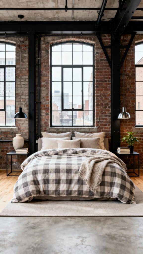 Chic Urban Loft With Oversized Gingham Comforter And Neutral Palette