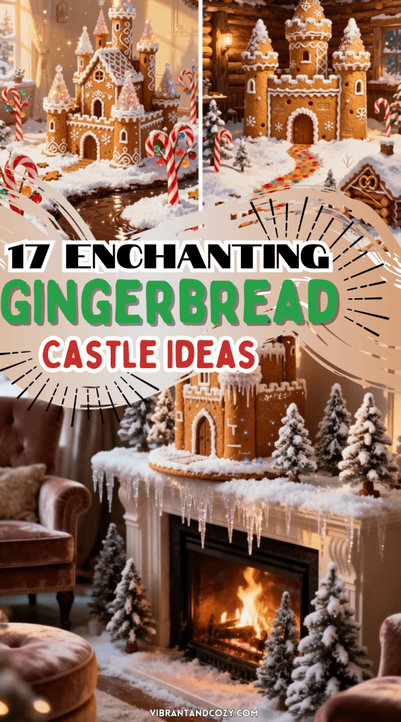 Step into an elegant living room where a frosted gingerbread castle graces the mantel, instantly becoming the focal point of the space. You’ll find that the frosted decorations on the castle evoke a sense of winter magic, drawing the eyes of every guest.