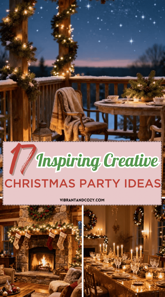 Don’t forget a few wooden accents, like a small log stack or a reclaimed wood coffee table, to complete the rustic vibe. Your guests will love relaxing in this inviting space, surrounded by festive decorations.