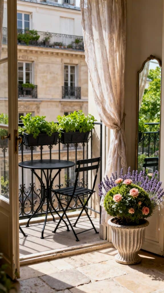Tiny footprint, big romance. Channel Left Bank vibes with a petite plant room that spills onto a balcony.