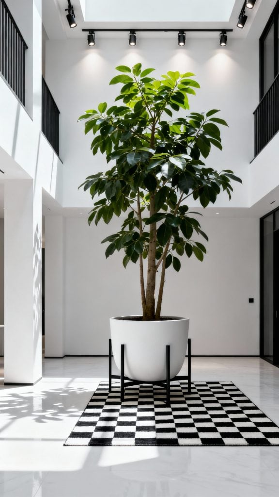- Oversized planter with an indoor tree (ficus, olive, or rubber)