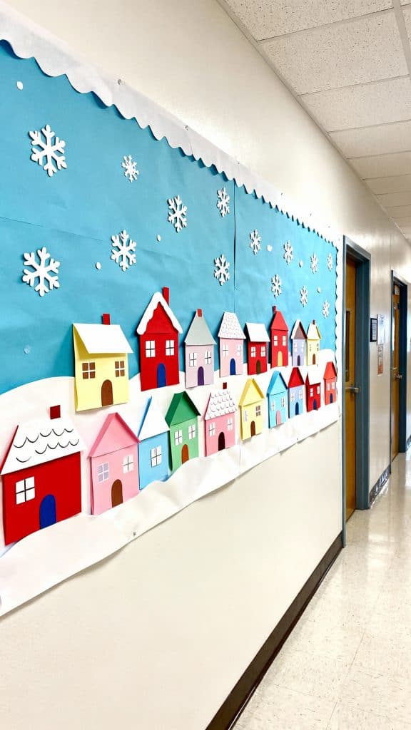 Cute Winter Village Wall Decor In A Bright School Hallway