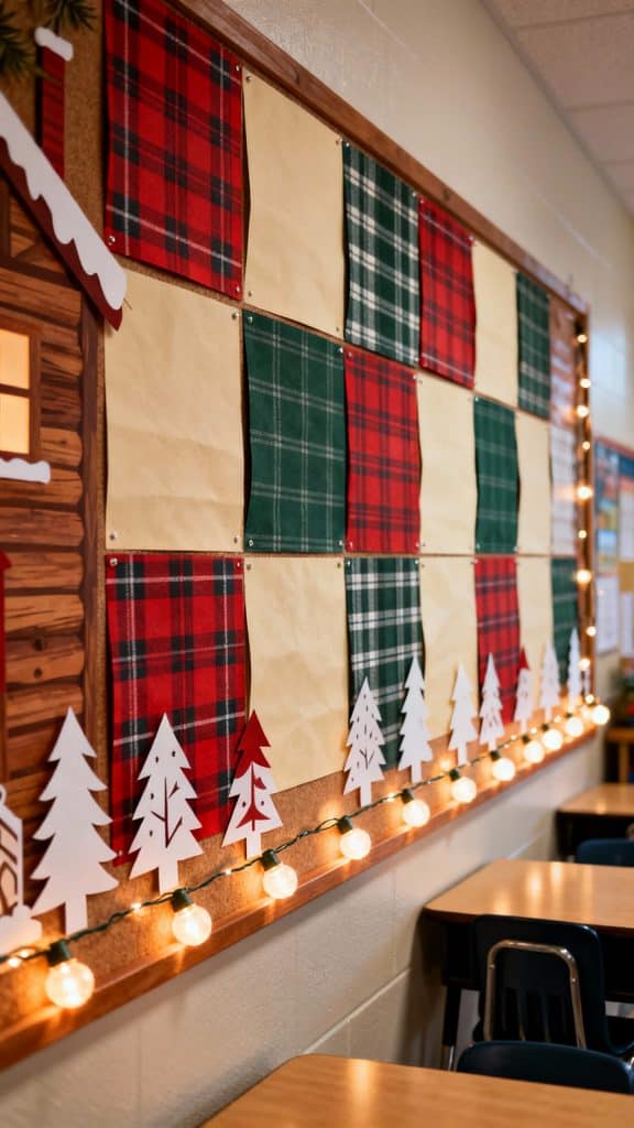 The cozy plaid designs and soft glowing lights in the classroom make it feel like a warm winter cabin.