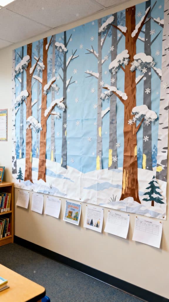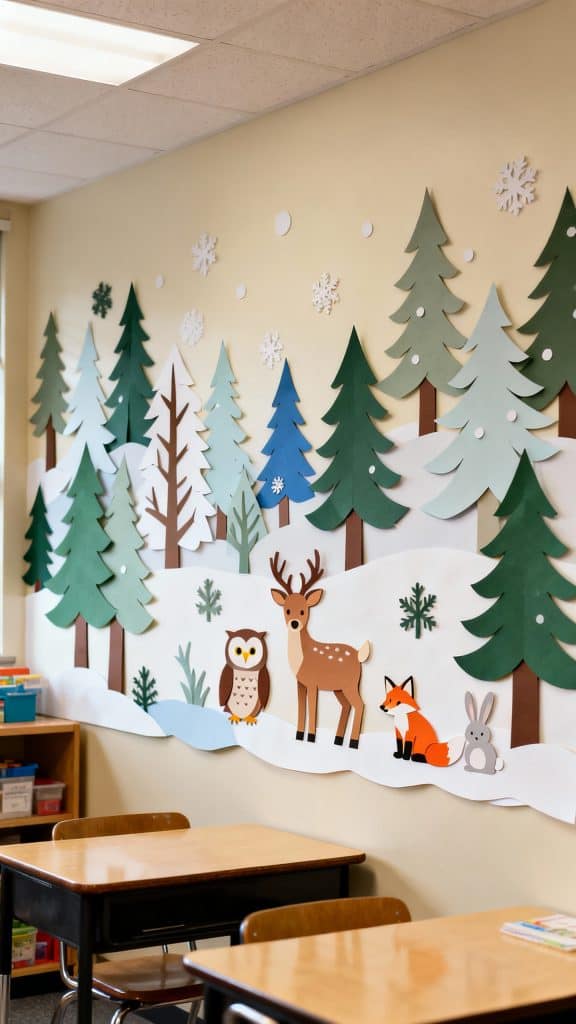 Cozy Woodland Winter Wall In A Nature-Focused Classroom
