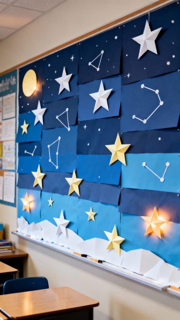 The polar night sky wall with stars and constellations is super cool! People love it because it makes their classroom feel magical and dreamy.