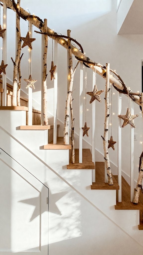 Nordic Scandi Staircase With Birch Branches, Minimalist Stars, And Calming Natural Tones