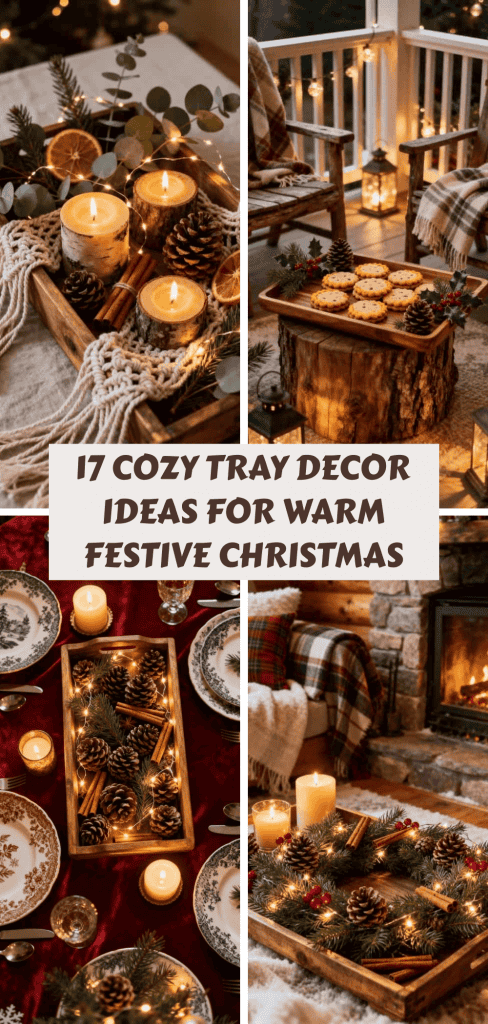 Make your home feel warm and cozy with a Christmas tray. Start with a simple wooden tray and add some soft blankets. You can place a few candles for a nice glow.