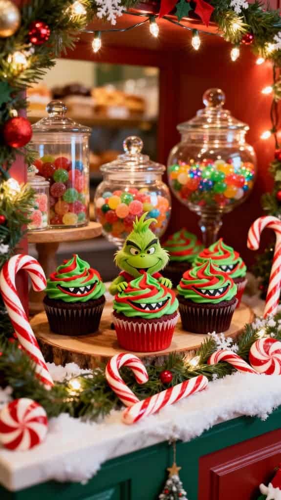 Bakery-Themed Corner With Whoville Cupcakes, Candy Jars, And Peppermint Decor