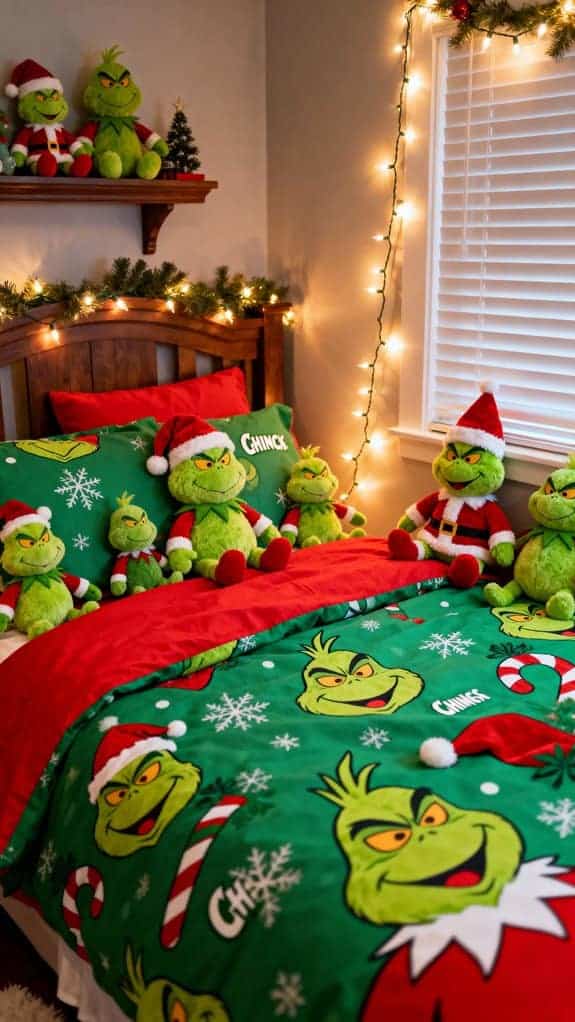 Begin with Grinch-themed bedding, featuring bold greens and reds that pop with holiday cheer. Add plush Grinch toys for cuddly companions that bring Dr. Seuss’s mischievous character to life.