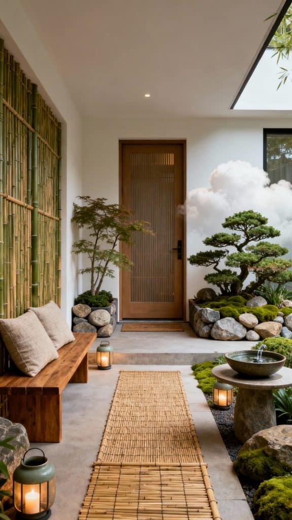 Crave serenity the second you get home? This porch delivers a soft, grounded mood with organic materials and soothing symmetry.