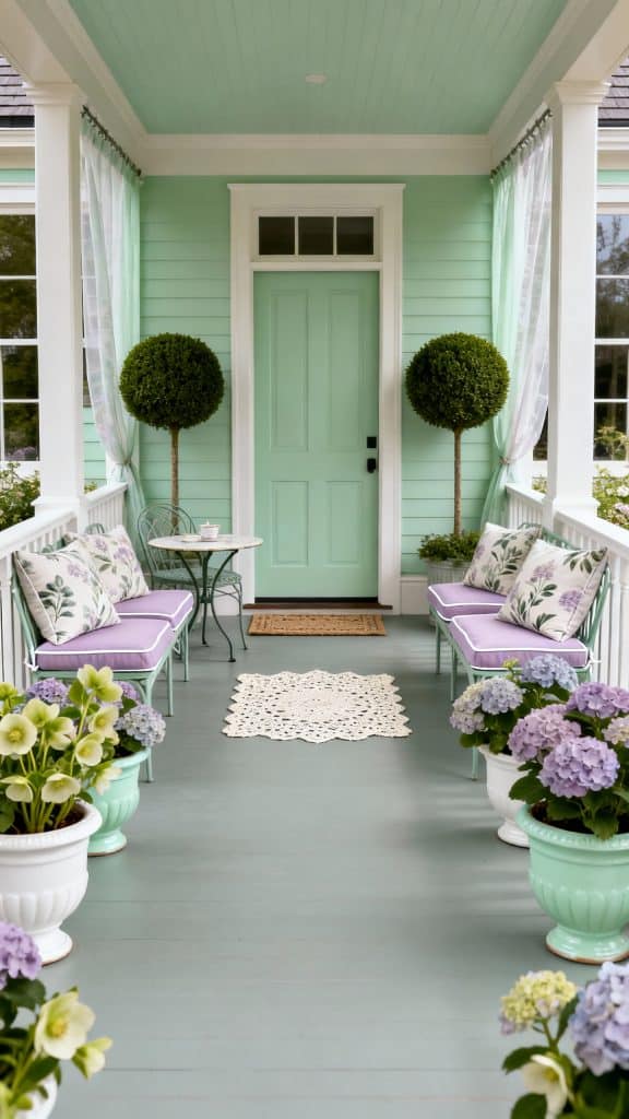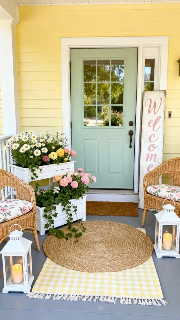 This design brings wildflower-meadow energy right to your front steps. Think cheerful patterns, soft textures, and lots of blooming moments layered together. Cozy and welcoming, it’s the porch equivalent of fresh scones and a handwritten note.