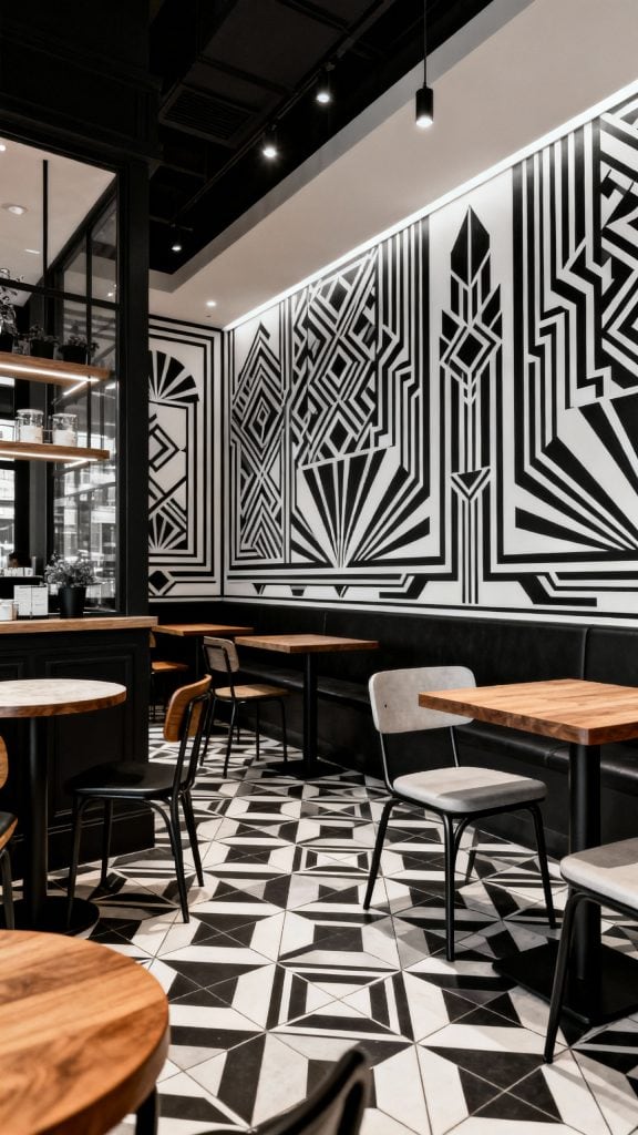 Urban Art Deco Cafe With Black-And-White Patterns And Strong Shapes