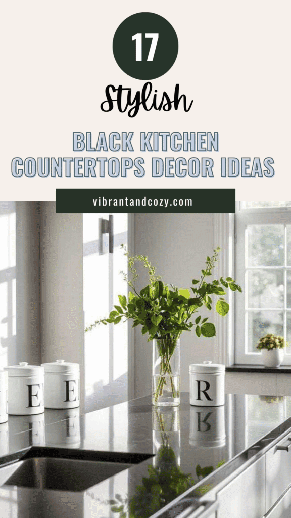 Got a black kitchen countertop? Add some style with a glass jar trio! Fill them with flour, sugar, and cocoa powder. You’ll have all your baking essentials ready to go.