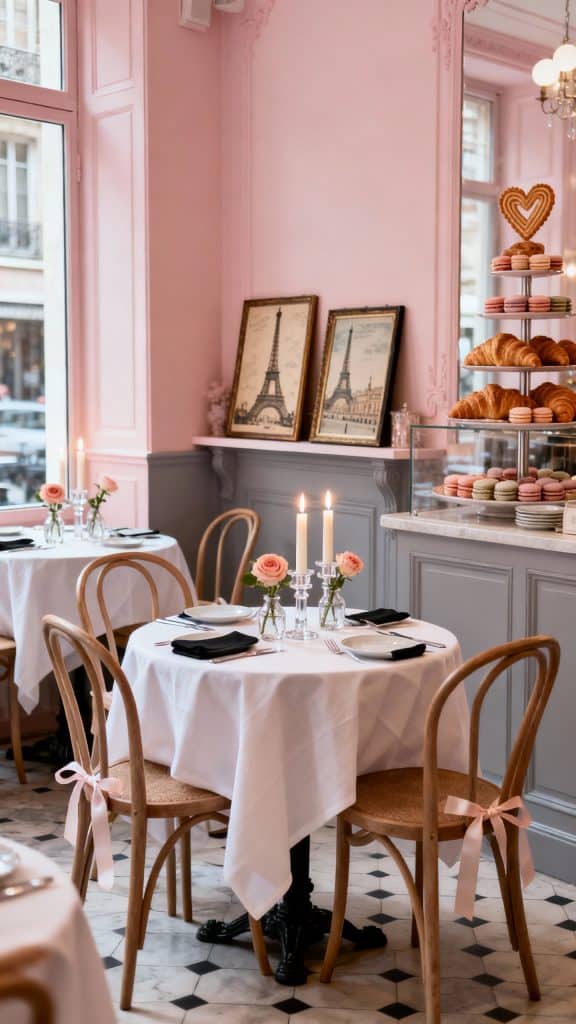 Imagine Paris in February—soft blush tones, tiny tables, and a haze of romance. This design transforms your dining room into a chic café where macarons meet baby shower magic. It feels intimate, polished, and oh-so-photo-friendly.