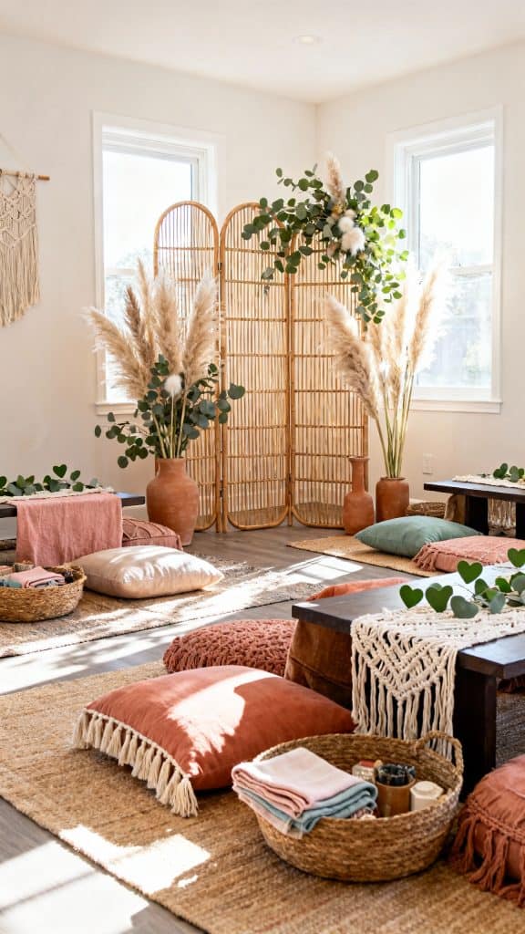 Go boho with earthy neutrals, woven textures, and airy greenery. It’s effortless and relaxed while still feeling special for a baby-centered celebration. You’ll get warmth and movement with every layer.